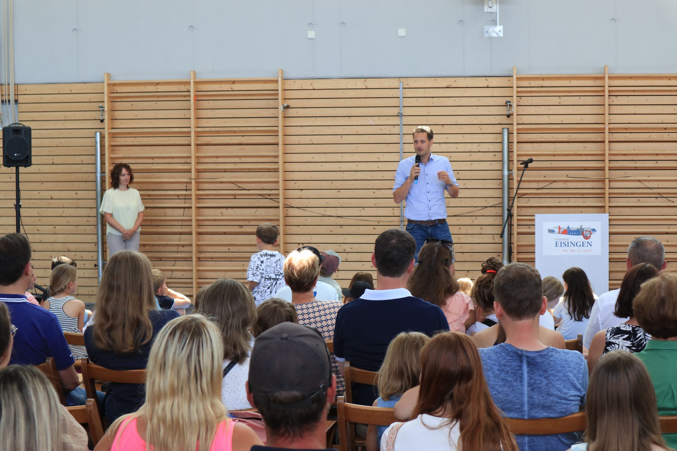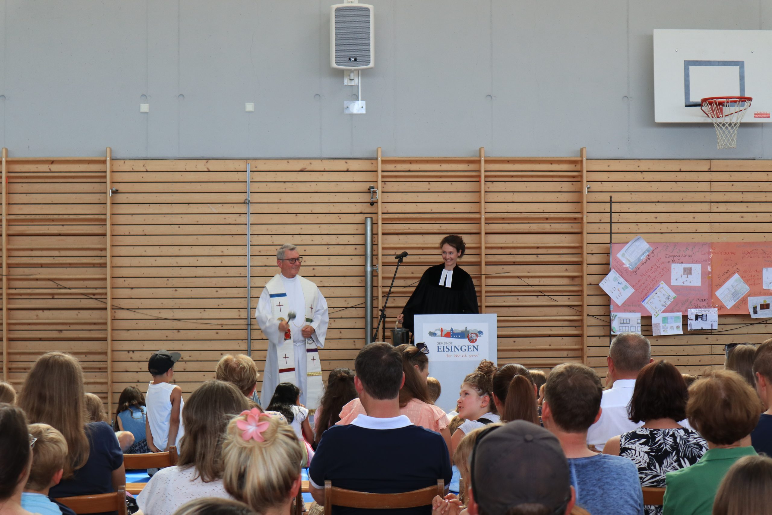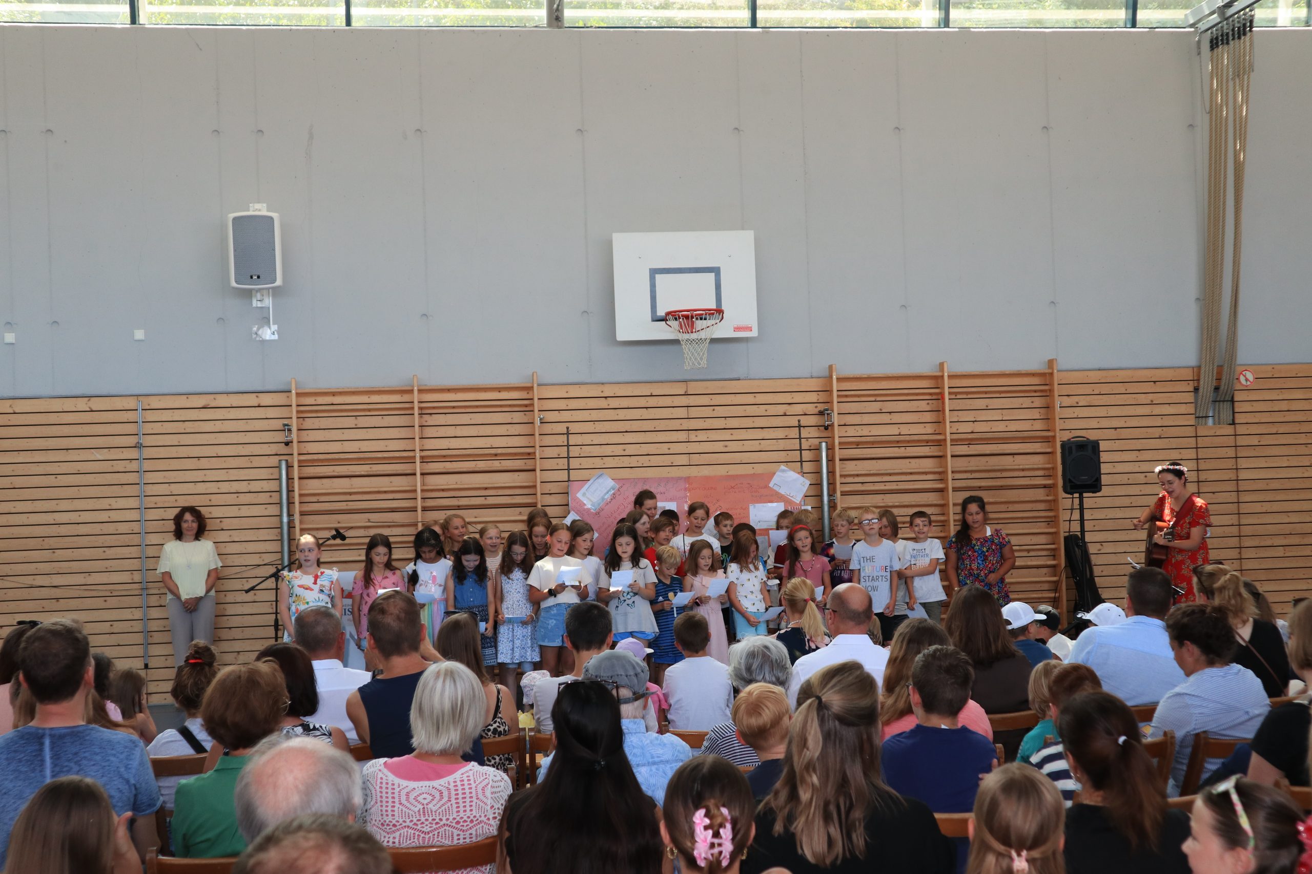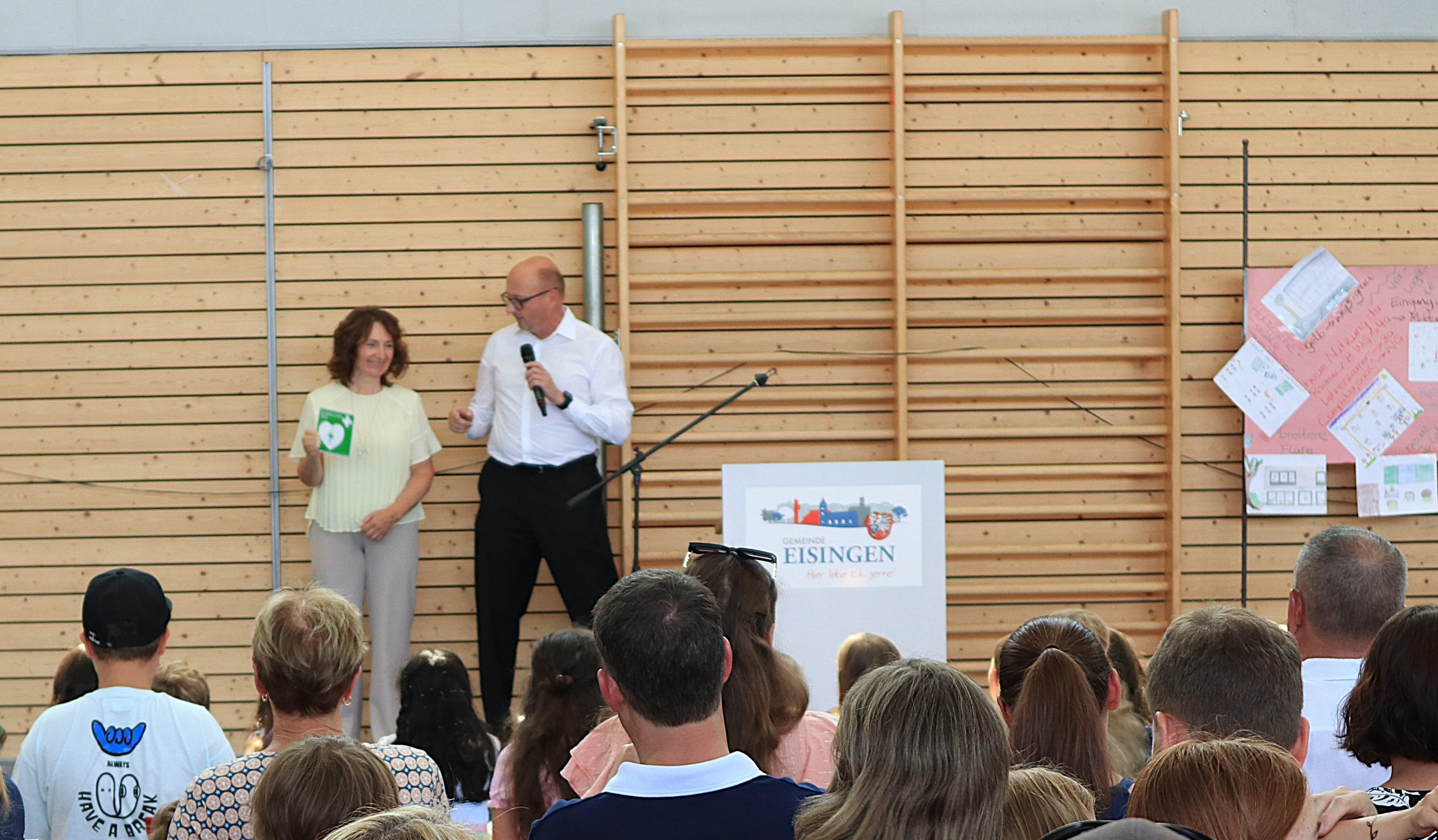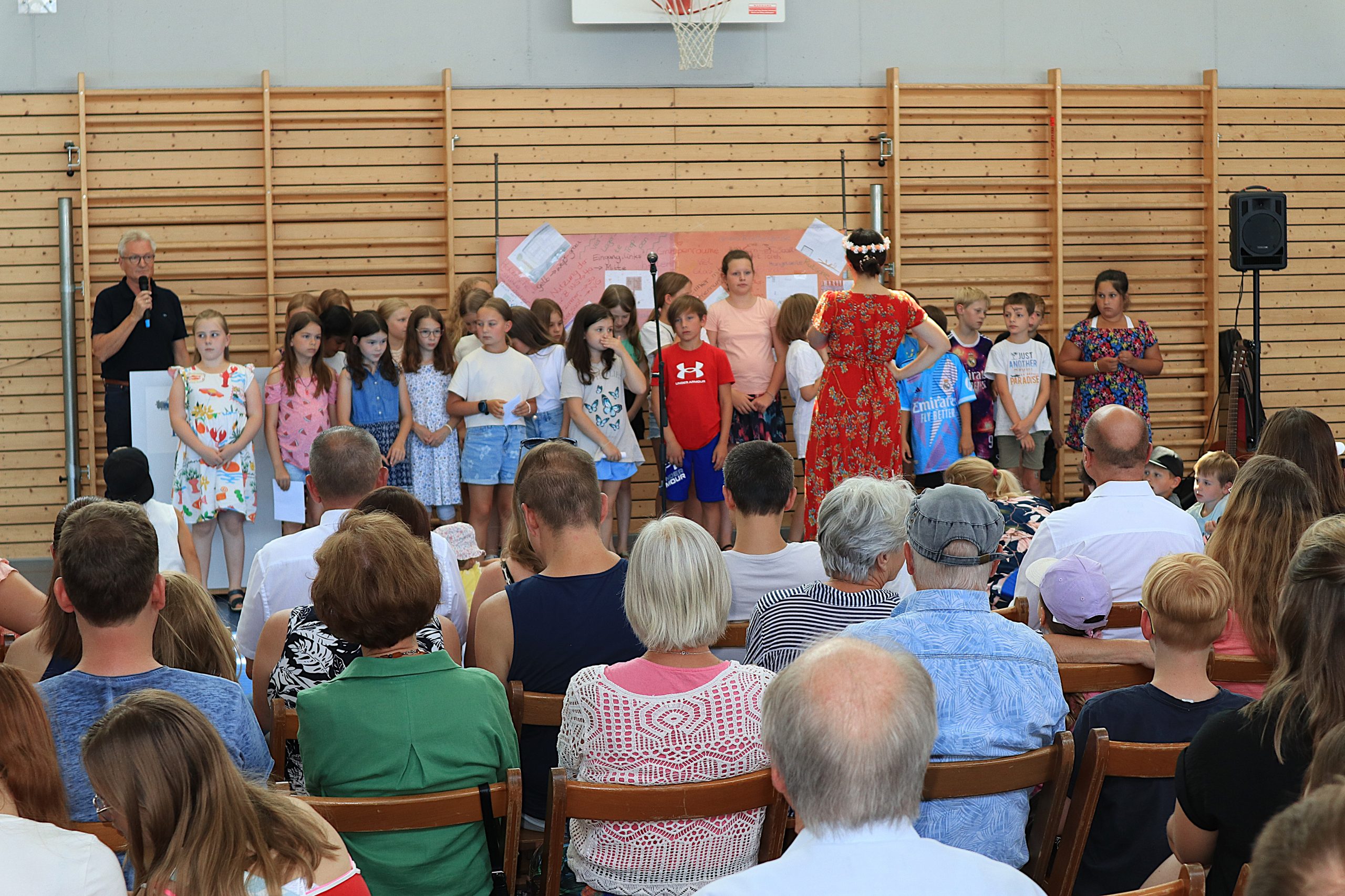 In der Schulturnhalle kamen alle Kinder der Verbandsschule Eisingen/Waldbrunn, Eltern und Weggefährten zusammen. Musikalisch oder in Worten haben die Schülerinnen und Schüler in vielen Beiträgen gezeigt, was sie an ihrem Schulleiter so geschätzt und mit ihm erlebt haben.
