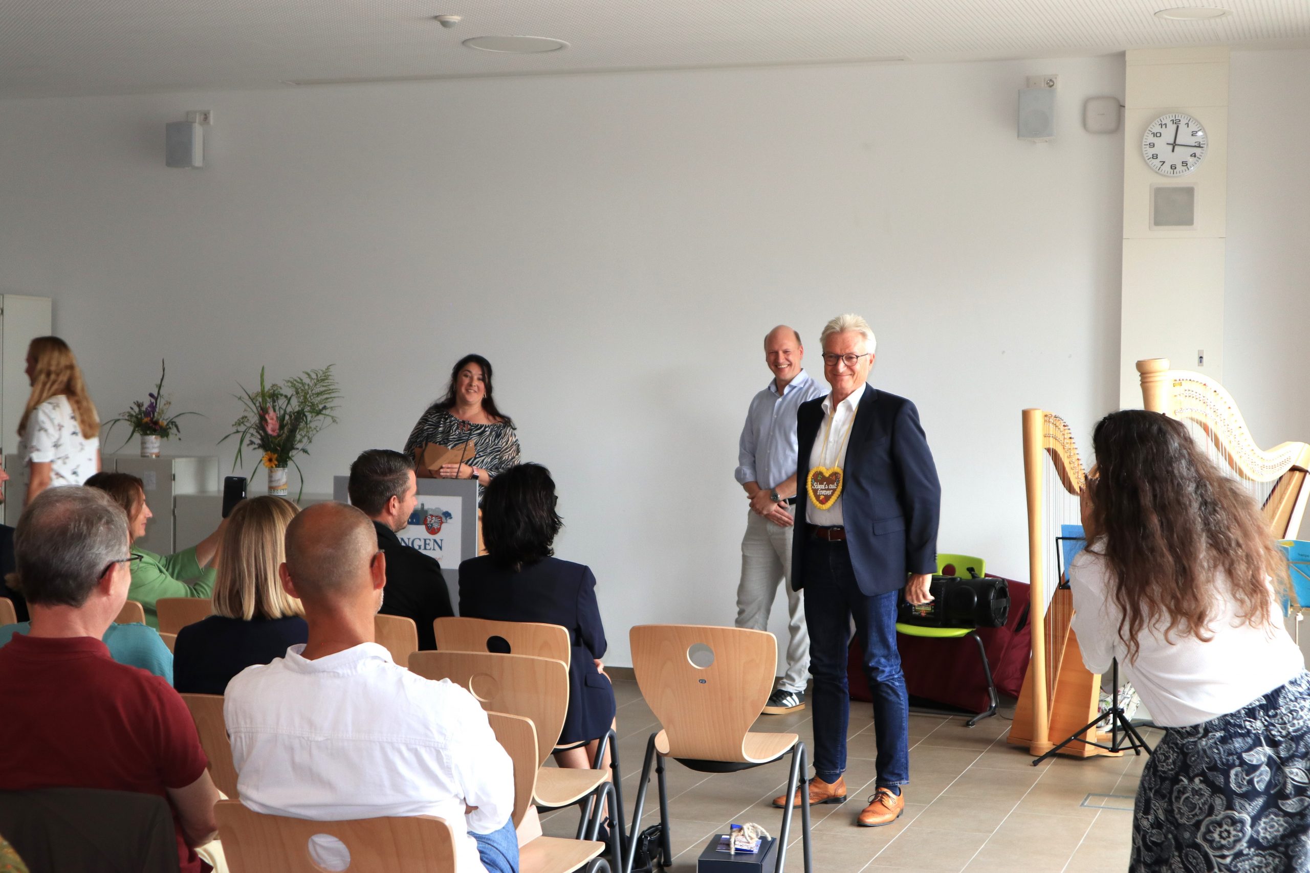In einer anschließenden kleinen Feierstunde mit Elternbeirat, Mitarbeiter/innen, Kolleginnen und Kollegen, Bürgermeister/in und Schulrätin wurden seine Verdienste gewürdigt.