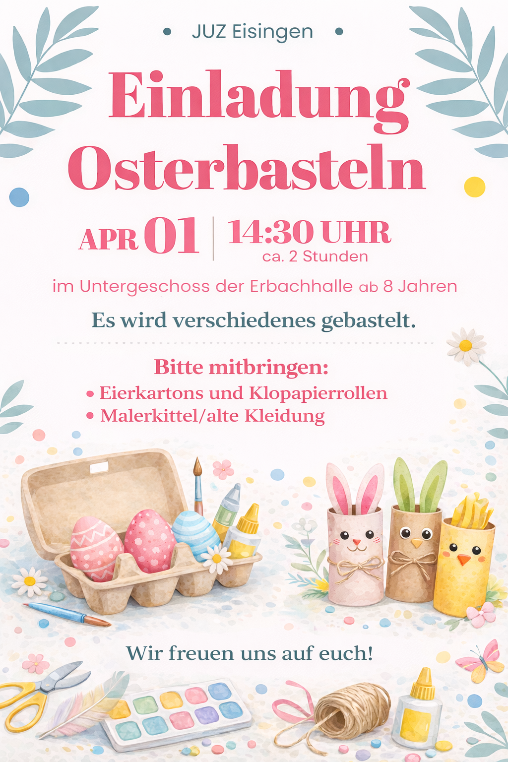 Das JUZ lädt alle Kids ab 8 Jahren zum Osterbasteln ein!